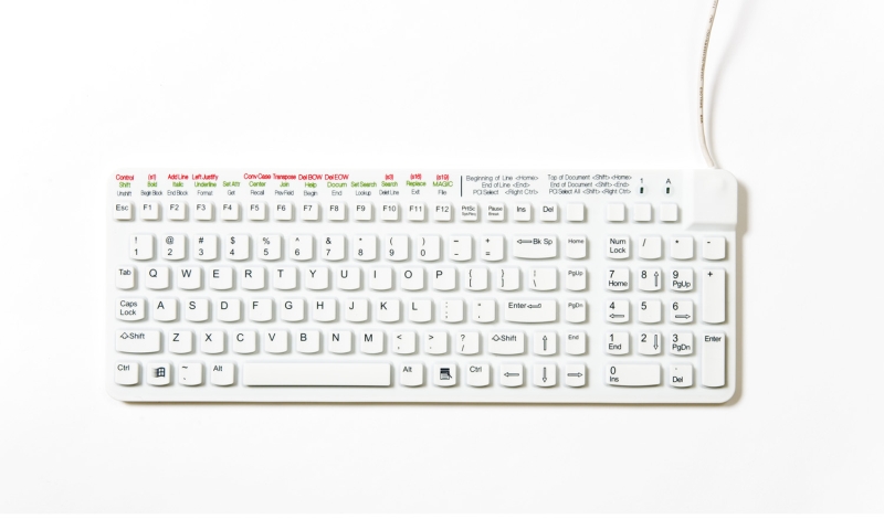 The Really Cool M is speciaal ontworpen voor gebruikers van Meditech's MAGIC systeem, door de speciale opdruk bedoeld voor snelle navigatie door het MAGIC systeem. Het heeft een lichte toetsaanslag en volledig indrukbare toetsen. De Really Cool M is geschikt voor elke omgeving waar rekening moet worden gehouden met vocht, vuil of bacteriën. Het toetsenbord produceert geen tik geluid bij het aanslaan van de toetsen, waardoor hij veel stiller is dan “standaard” toetsenborden. Met een breedte van maar 30 cm is hij ideaal bij ruimtegebrek. |