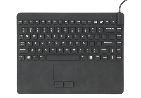 Het Slim Cool+ toetsenbord is een zeer compact, volledig stof- en waterdicht toetsenbord met geïntegreerde touchpad. U heeft geen muis of trackball meer nodig. Niet alleen water en stof hebben geen vat op dit toetsenbord, ook tegen de meeste reinigingsmiddelen is de Slim Cool bestand. Hij is namelijk compleet afgesloten. Nergens zijn kieren of openingen waar bacteriën zich kunnen ophopen. Daardoor is de Slim Cool geschikt voor elke omgeving waar rekening moet worden gehouden met vocht, vuil of bacteriën. Het heeft een lichte toetsaanslag en volledig indrukbare toetsen. Het toetsenbord produceert geen tik geluid bij het aanslaan van de toetsen, waardoor hij veel stiller is dan “standaard” toetsenborden. |